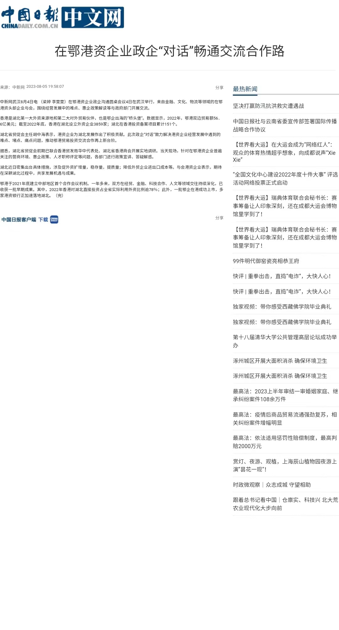 中国日报:在鄂港资企业政企“对话”畅通交流合作路