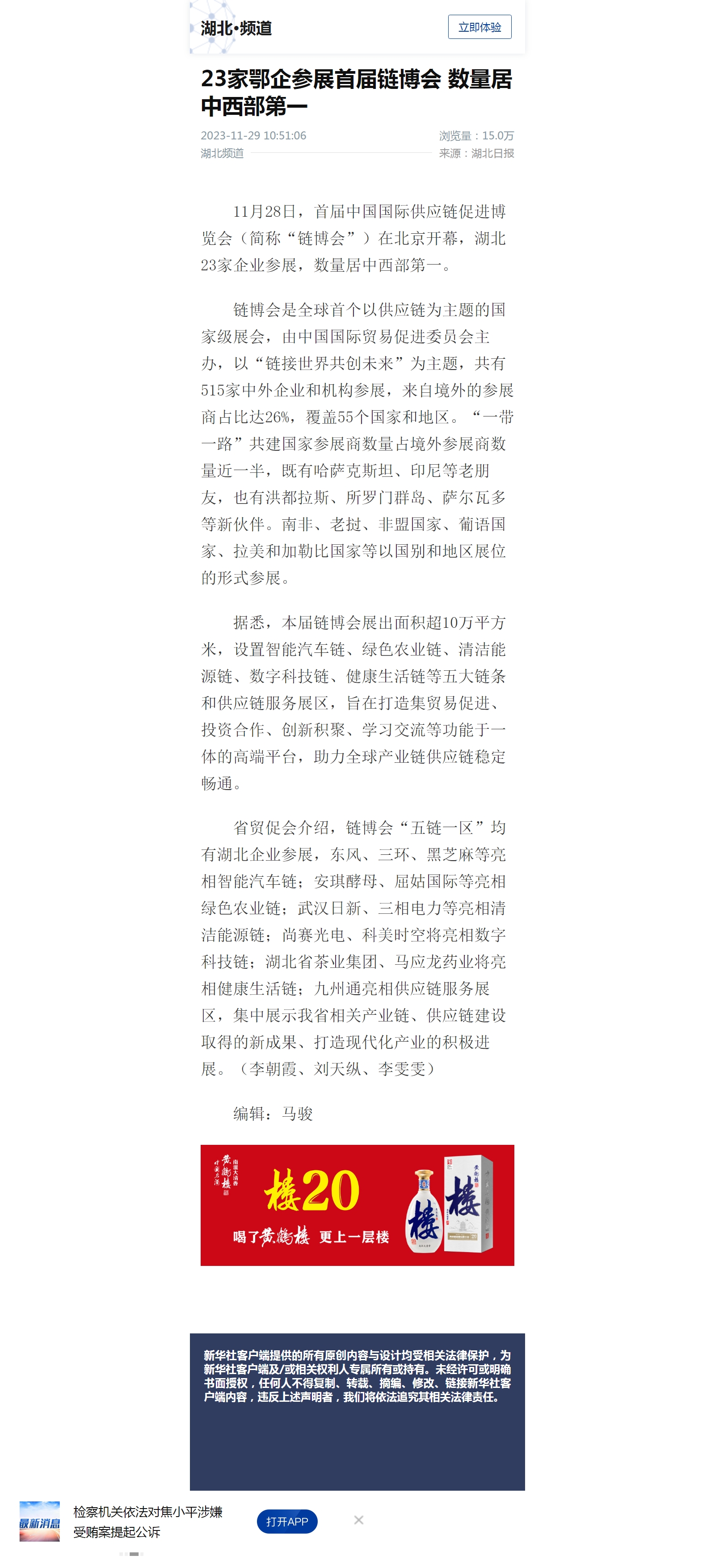 新华社:23家鄂企参展首届链博会 数量居中西部第一