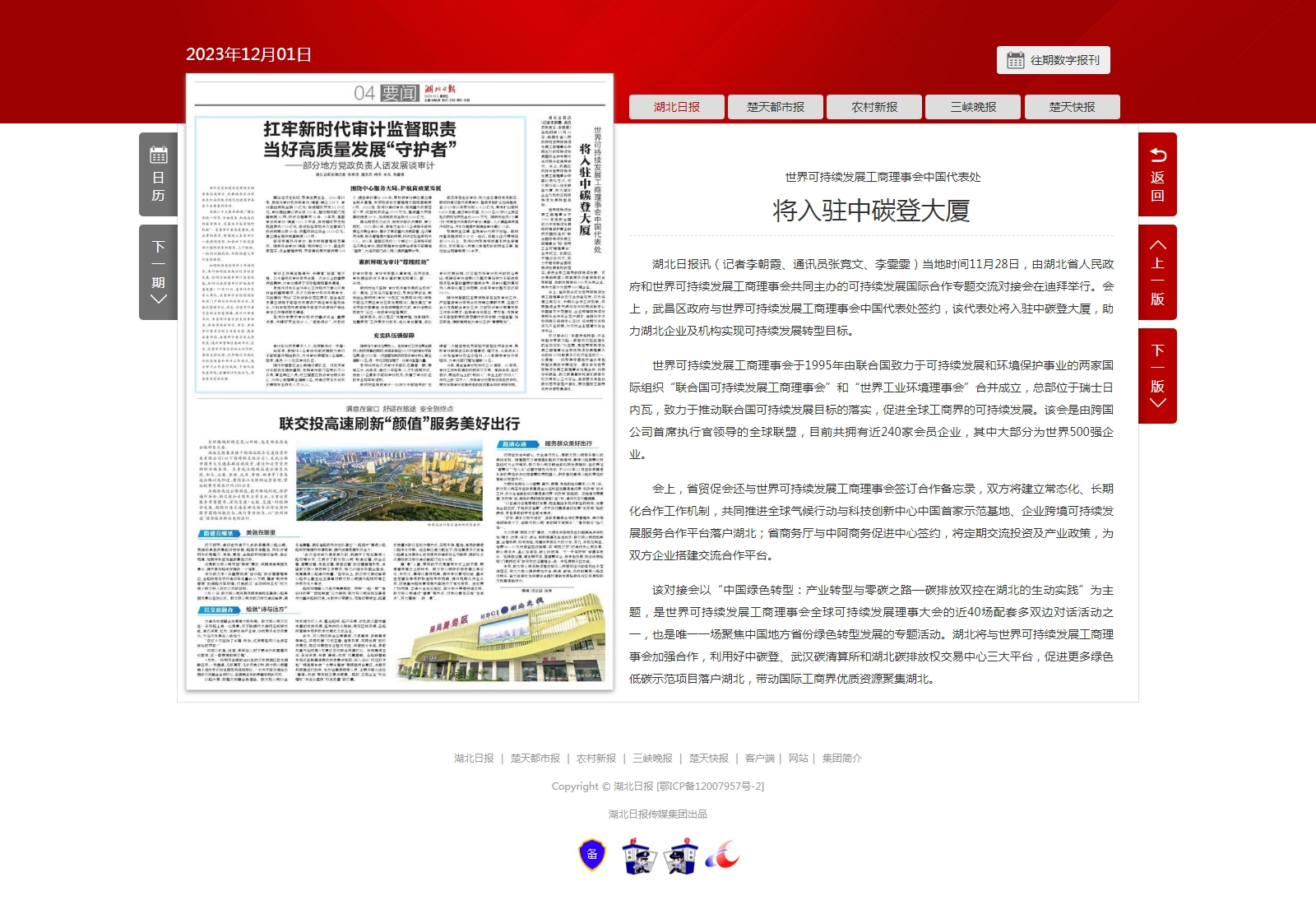 湖北日报:世界可持续发展工商理事会中国代表处将入驻中碳登大厦