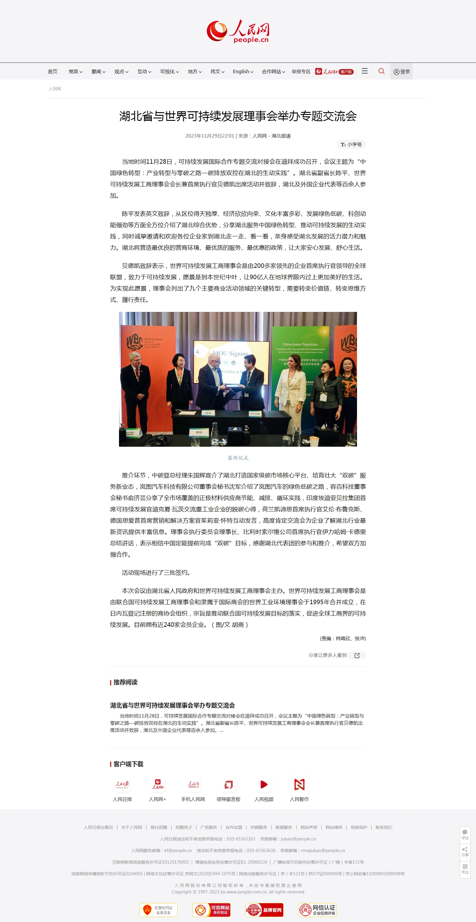 人民网:湖北省与世界可持续发展理事会举办专题交流会