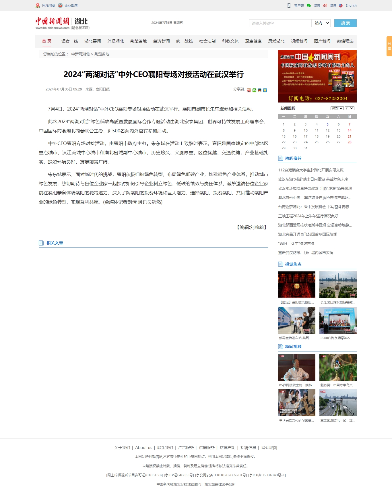 中国新闻网:2024“两湖对话”中外CEO襄阳专场对接活动在武汉举行