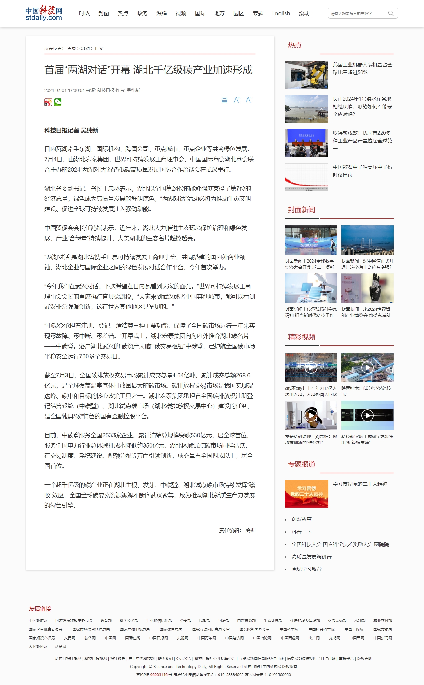 中国科技网:首届“两湖对话”开幕 湖北千亿级碳产业加速形成
