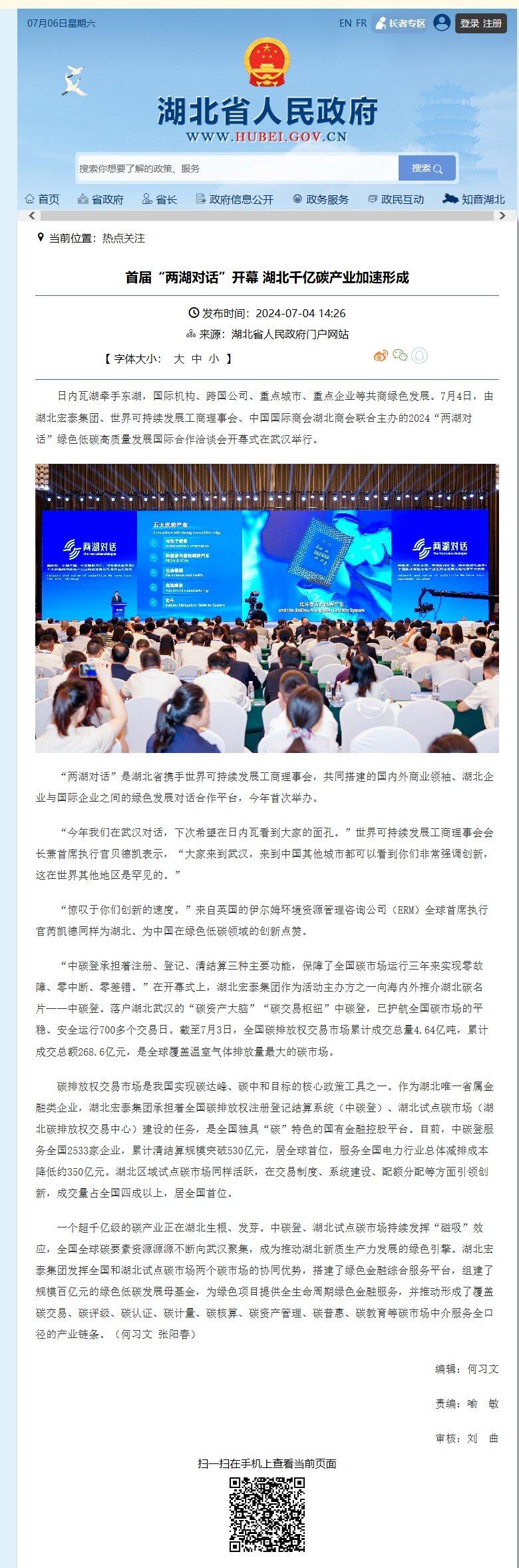 湖北省人民政府门户网站:首届“两湖对话”开幕 湖北千亿碳产业加速形成