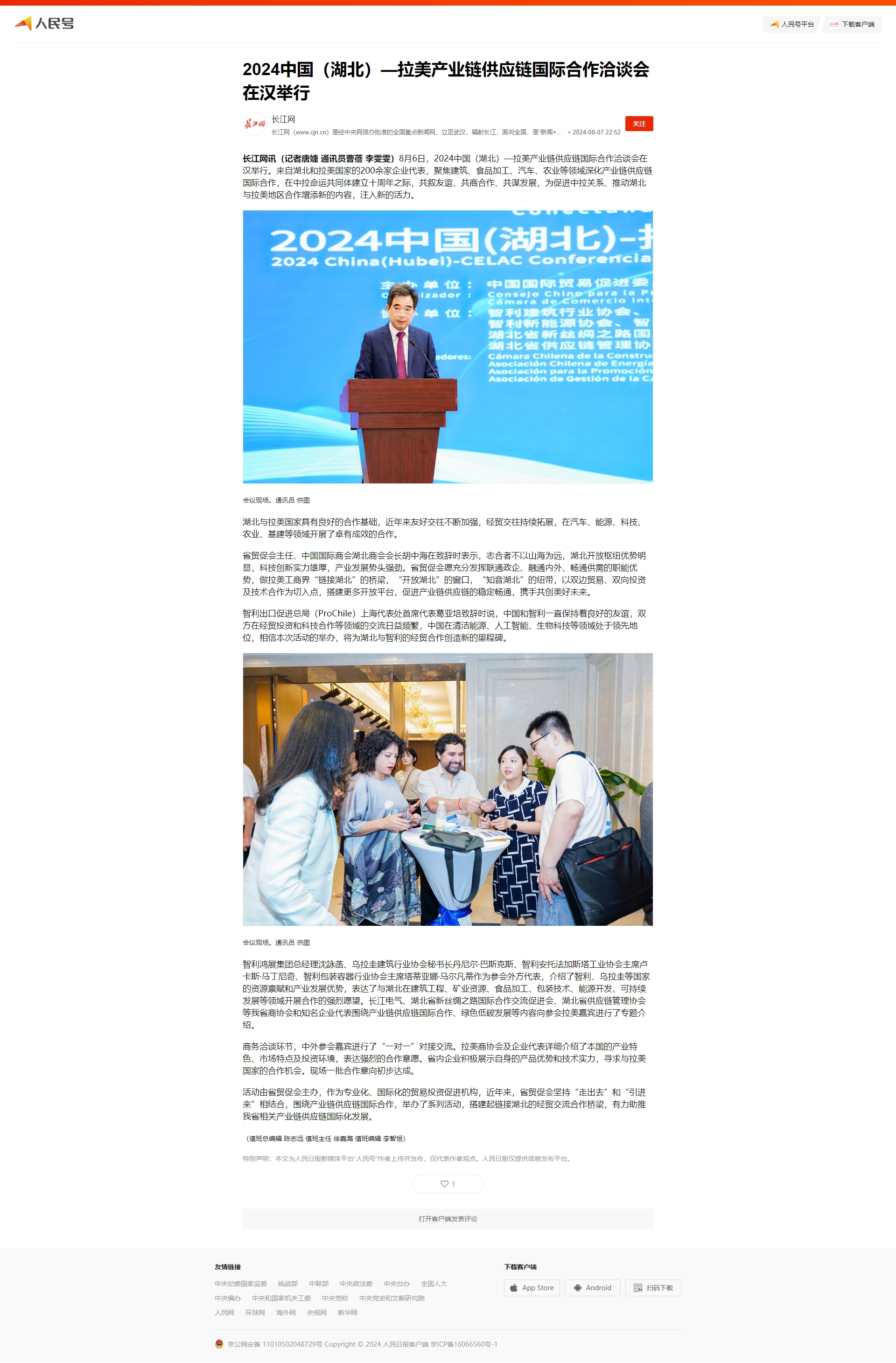 人民号:2024中国(湖北)—拉美产业链供应链国际合作洽谈会在汉举行