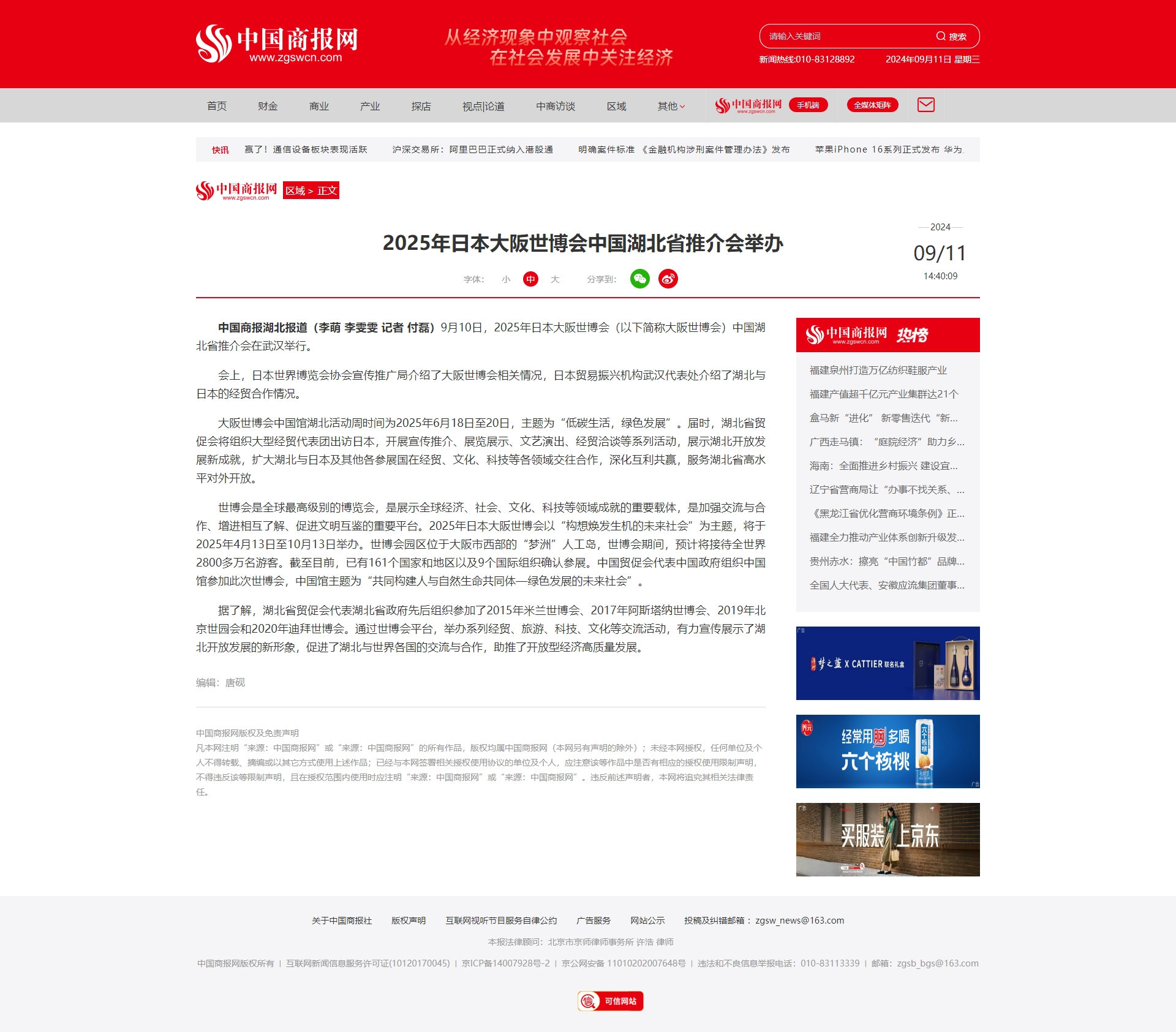 中国商报:2025年日本大阪世博会中国湖北省推介会举办