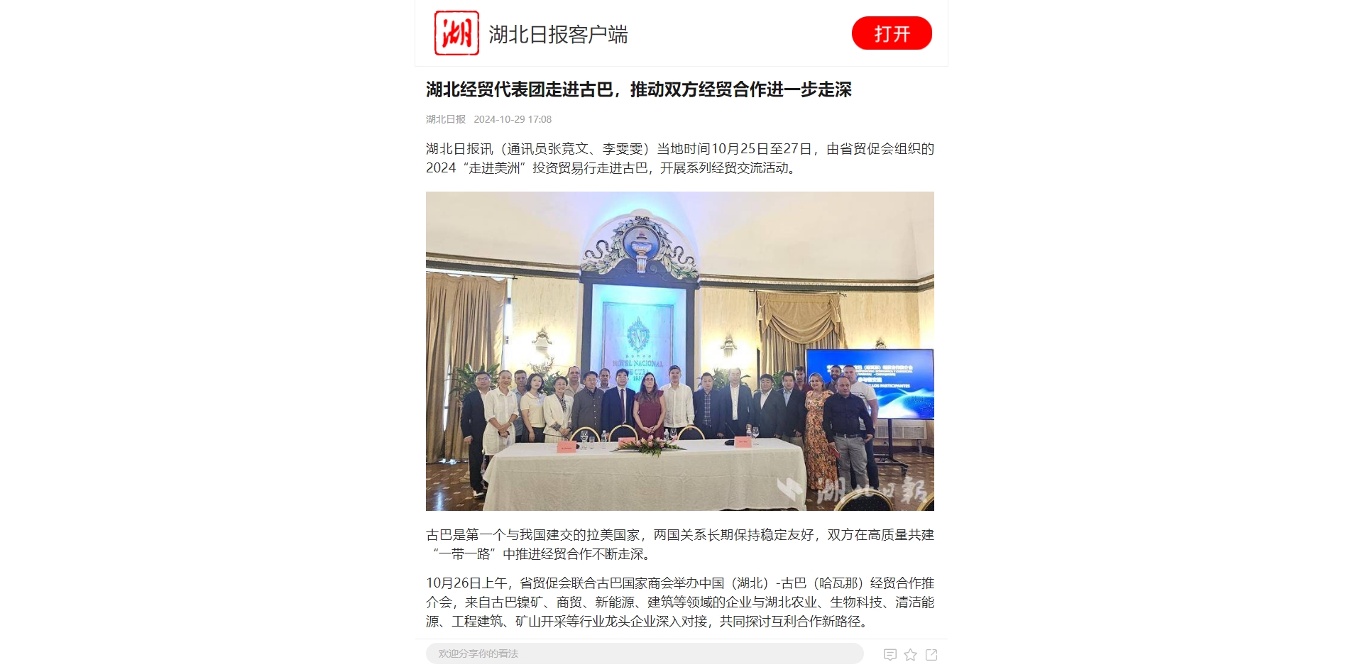湖北日报:湖北经贸代表团走进古巴,推动双方经贸合作进一步走深