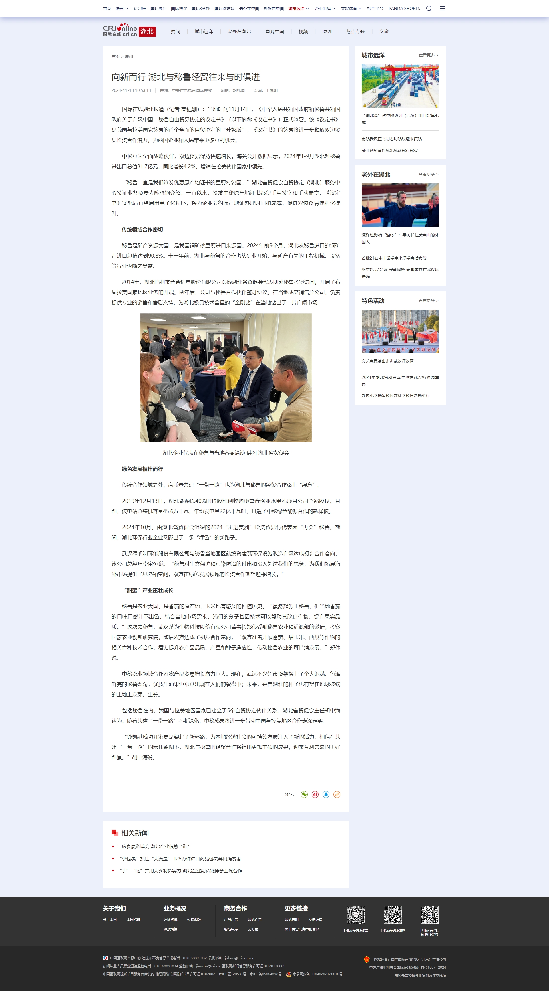 国际在线:向新而行 湖北与秘鲁经贸往来与时俱进