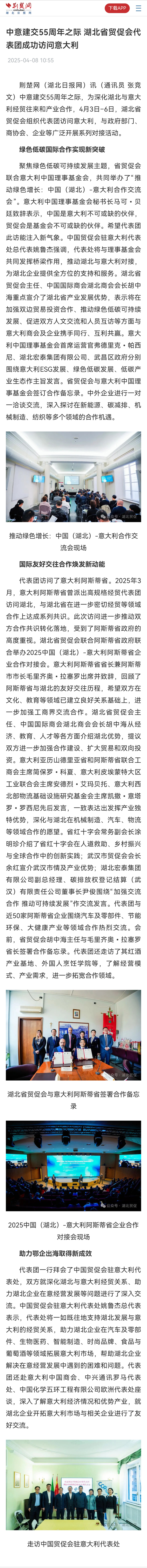荆楚网:中意建交55周年之际 湖北省贸促会代表团成功访问意大利