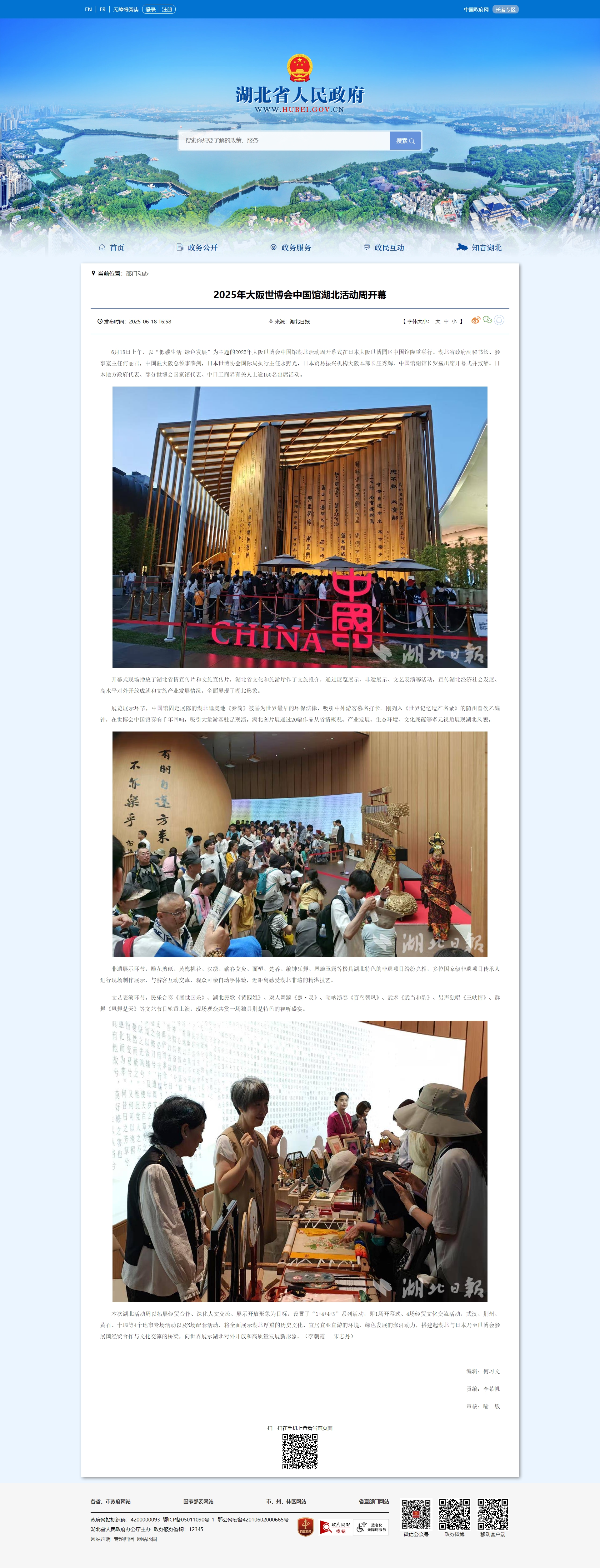 湖北省人民政府门户网站:2025年大阪世博会中国馆湖北活动周开幕
