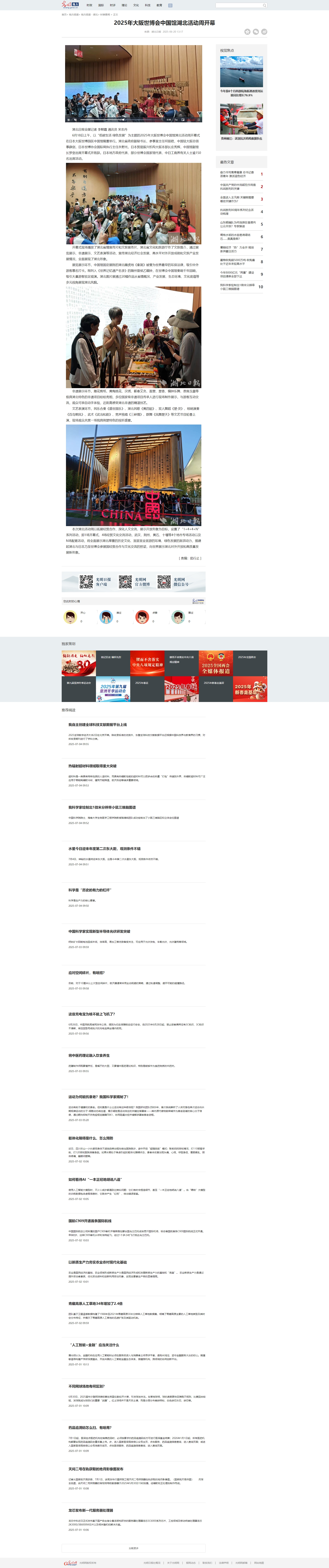 光明网:2025年大阪世博会中国馆湖北活动周开幕