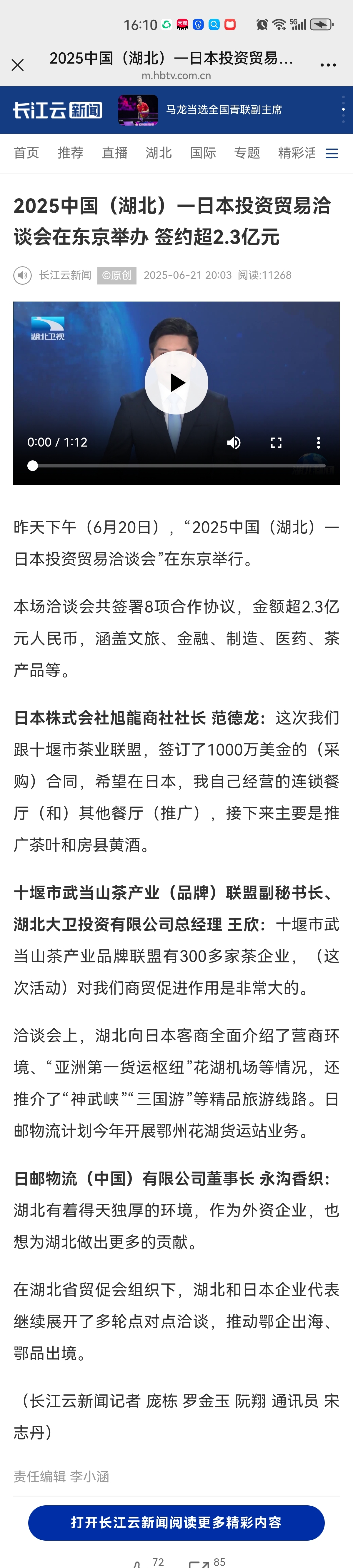 湖北电视台《湖北新闻》:2025中国(湖北)—日本投资贸易洽谈会在东京举办 签约超2.3亿元