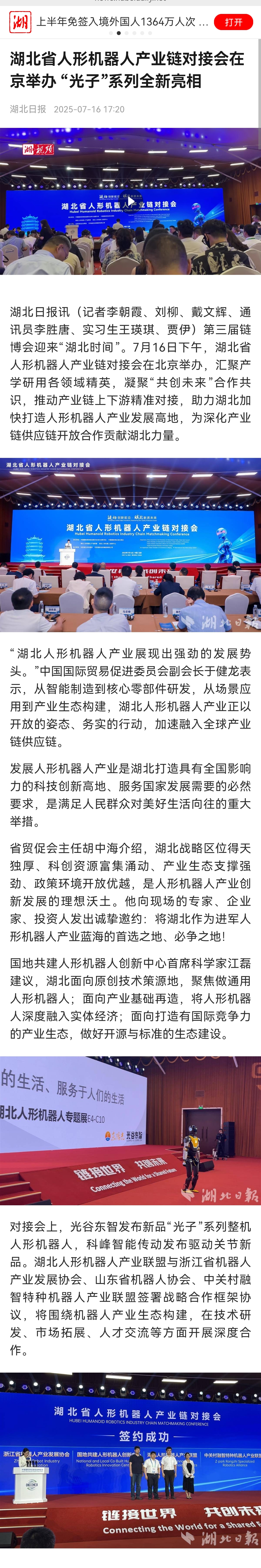 湖北日报:湖北省人形机器人产业链对接会在京举办 “光子”系列全新亮相