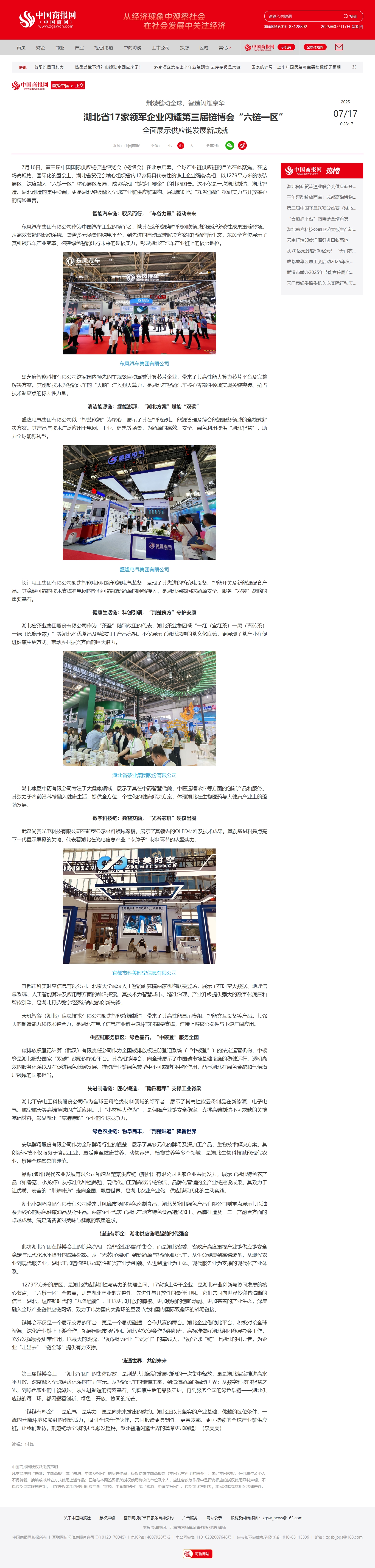 中国商报:湖北省17家领军企业闪耀第三届链博会“六链一区”