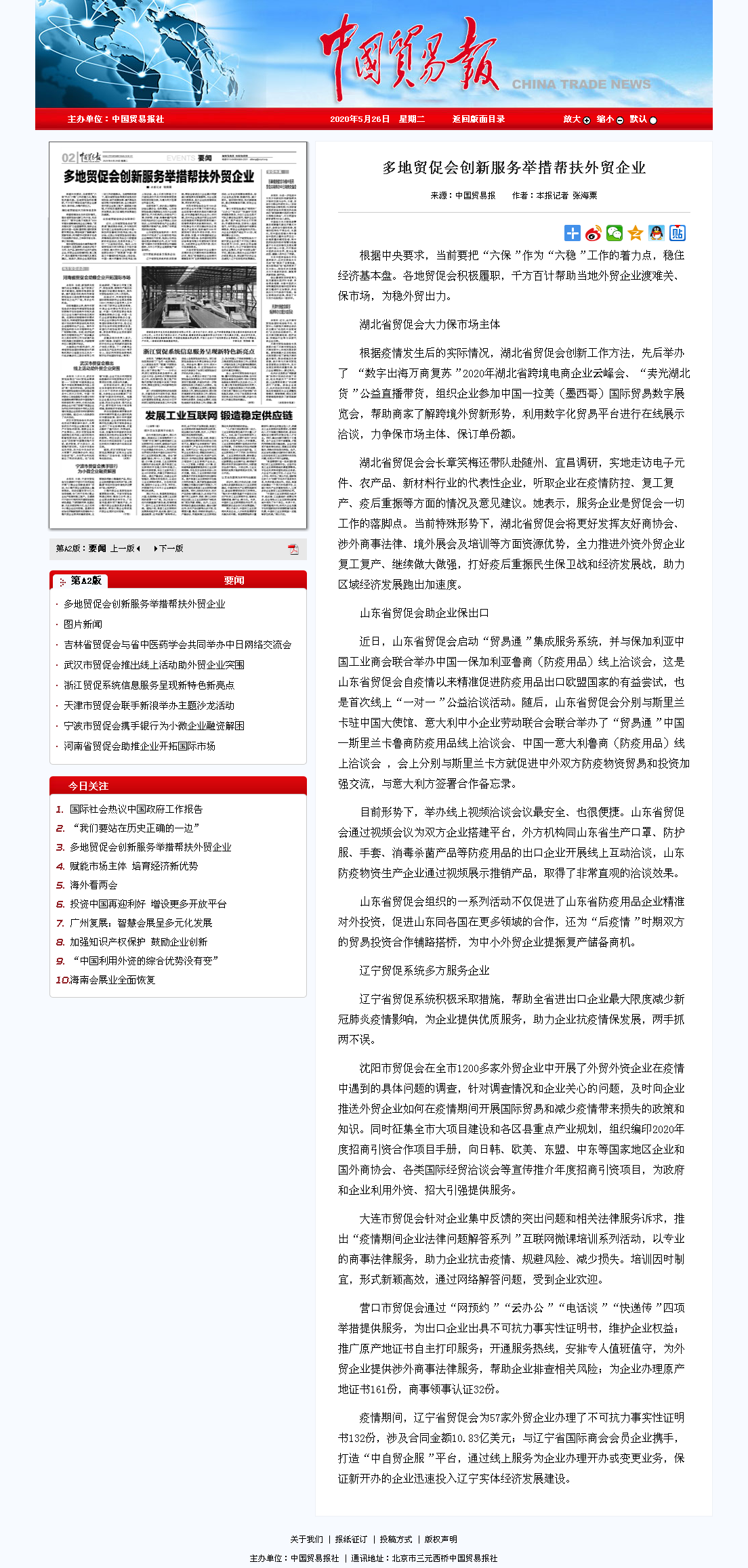 中国贸易报:多地贸促会创新服务举措帮扶外贸企业
