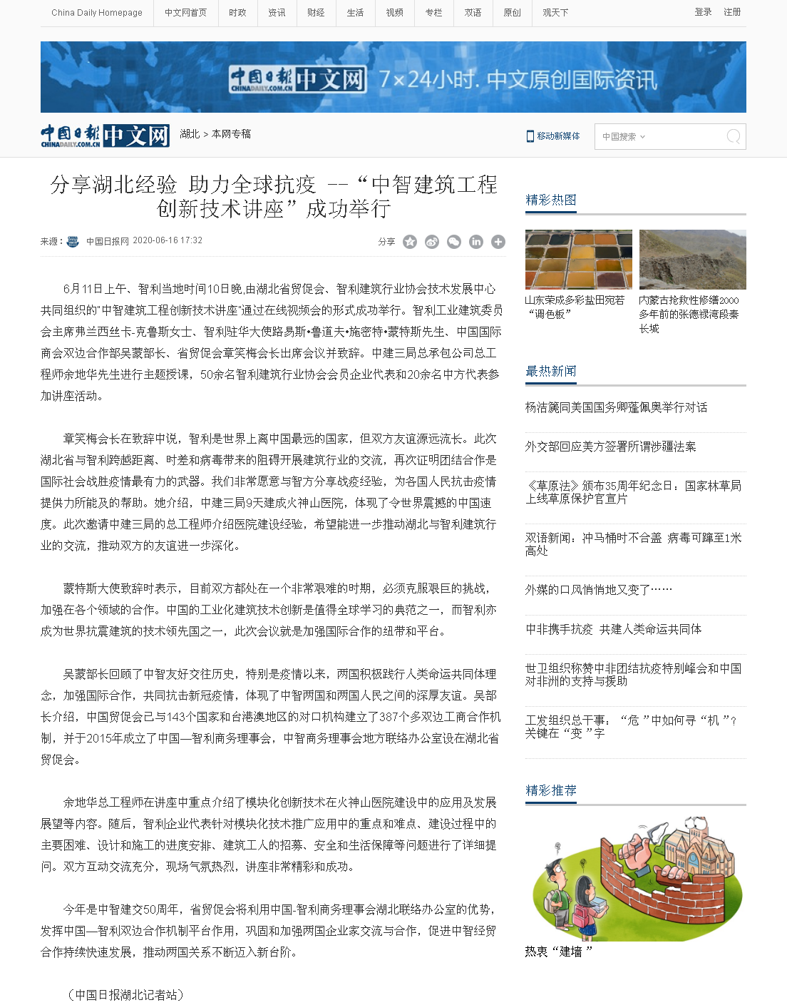 中国日报网:分享湖北经验 助力全球抗疫 --“中智建筑工程创新技术讲座”成功举行