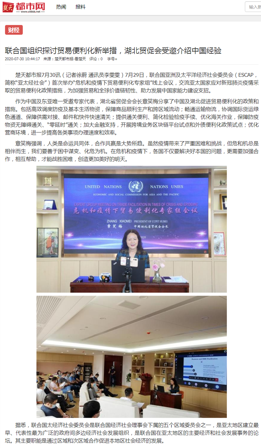 楚天都市报:联合国组织探讨贸易便利化新举措,湖北贸促会受邀介绍中国经验