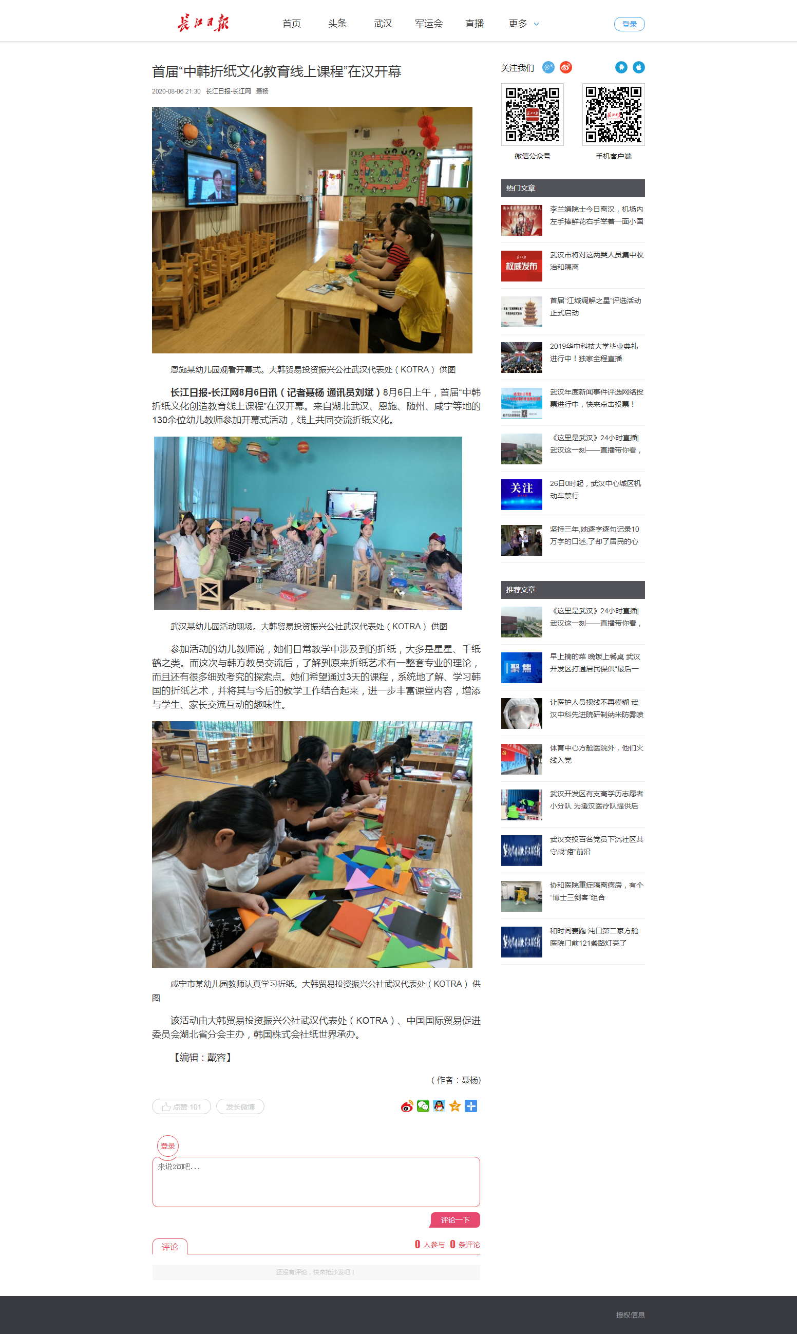 长江日报:首届“中韩折纸文化教育线上课程”在汉开幕
